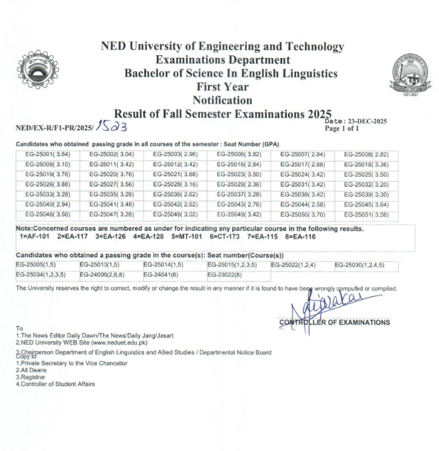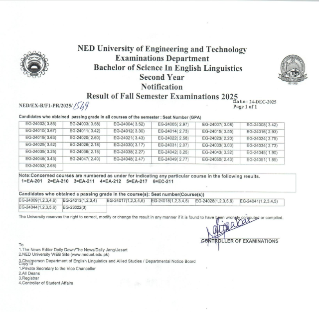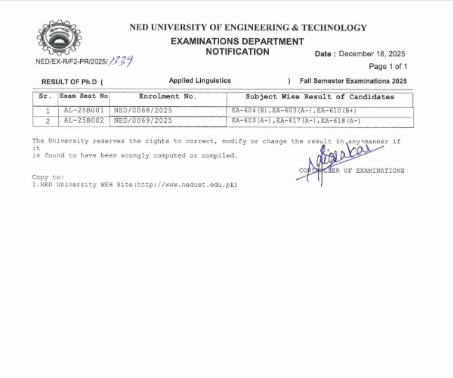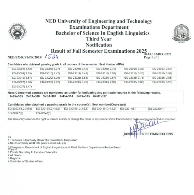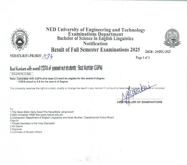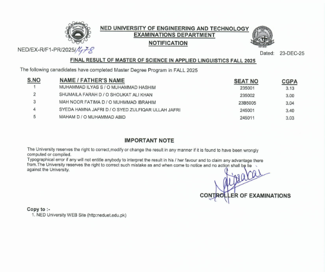 Final Merit List - MS Applied Linguistics, Fall 2024.