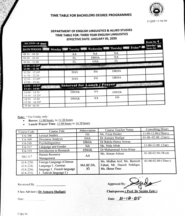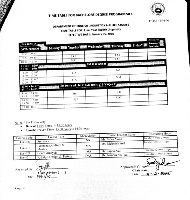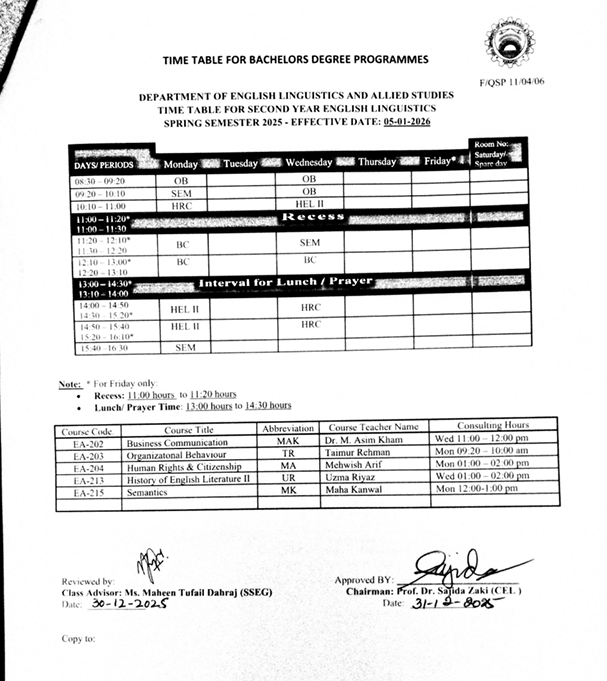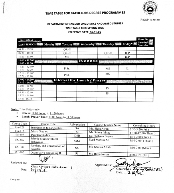Entry Test Date: August 2, 2024, from 2.30 pm to 4:30 pm at the Department