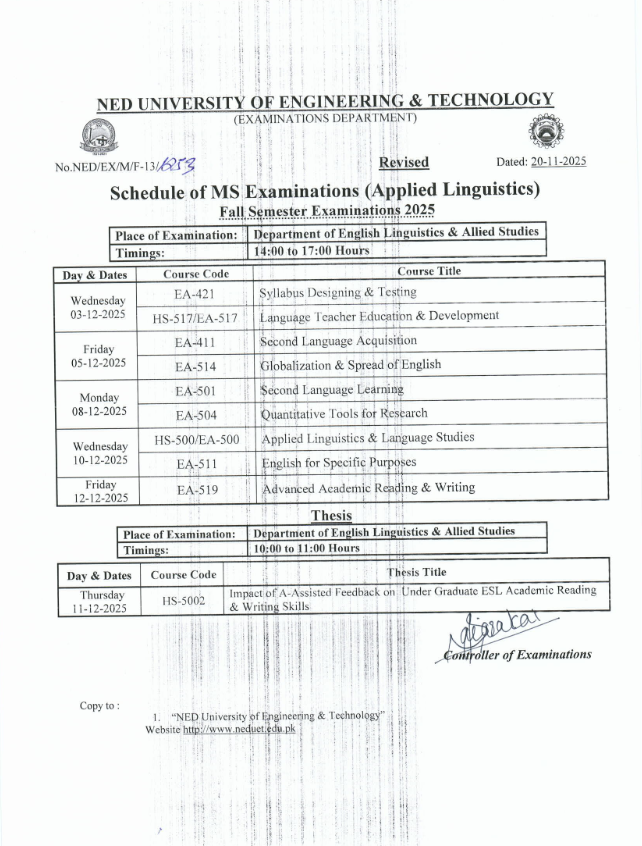 Notice - Flyer -MS Applied Linguistics admission announcement Fall 2024