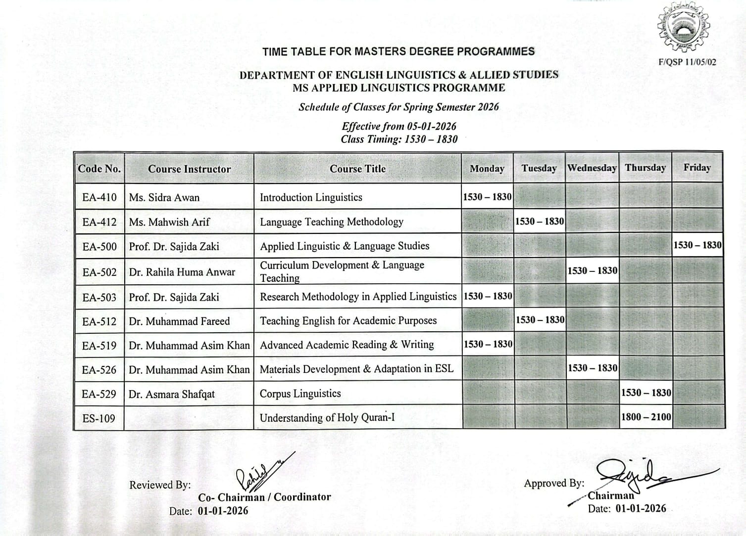 Flyer -MS Applied Linguistics admission Announcement Spring 2025